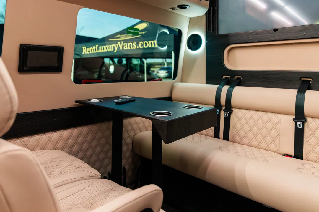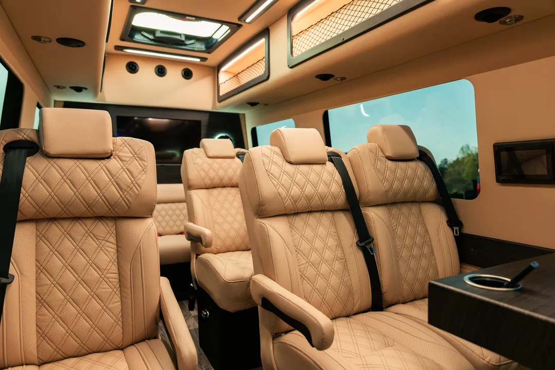 Classic Sprinter layouts that balance capacity and comfort for teams, family groups, and event shuttles.